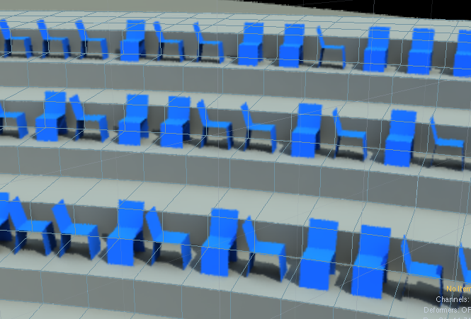 実際には競技場なんかの椅子は一様にセンターを向いているのではなくワンブロック毎に同じ向きだったりするので、そういう場合はブロック毎に頂点を選択して回転をかければよい。
