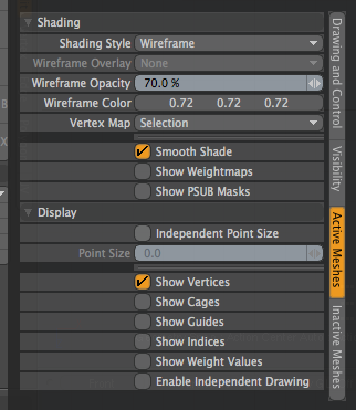 頂点が見えない場合は「O」キーをおしてActive Meshesのタブの項目から頂点表示を選択しておこう。
