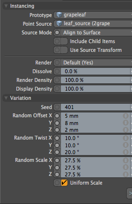 ここで言えばPrototypeにブドウの葉、Point Sourceに四角細分化したポイント群。