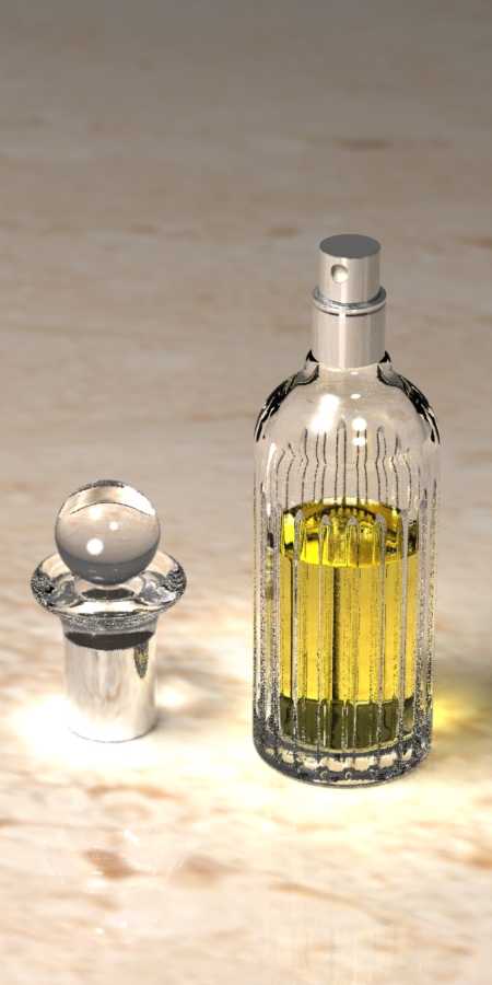 これは、ガラス部分のノイズが軽減されるかもとの期待でアンチエリアシングのサンプル数を1024、反射回数を12まであげたもの。