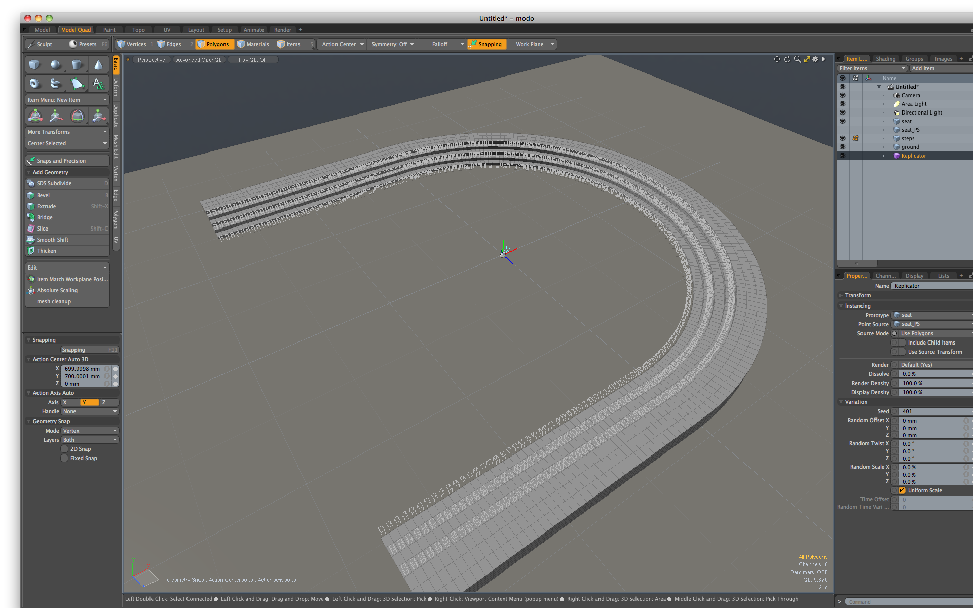 そのためにリプリケータを使用してインスタンス配置をしていくのだが、Rに沿った座席となると思った通りできないことがある。