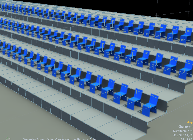実際には競技場なんかの椅子は一様にセンターを向いているのではなくワンブロック毎に同じ向きだったりするので、そういう場合はブロック毎に頂点を選択して回転をかければよい。