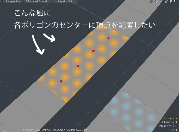 頂点はこのポリゴンのセンターに置きたいので少し面倒な作業を施す。