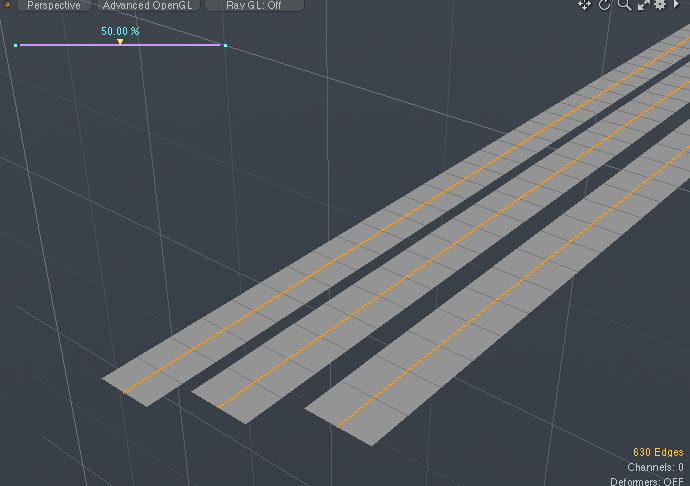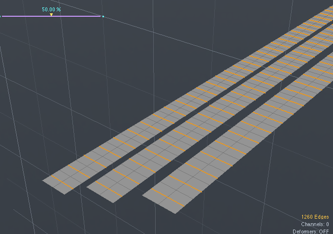 続いてそれに垂直に走るエッヂを追加する(各端のエッヂを順に二本選択して、上矢印キーで追加選択する)