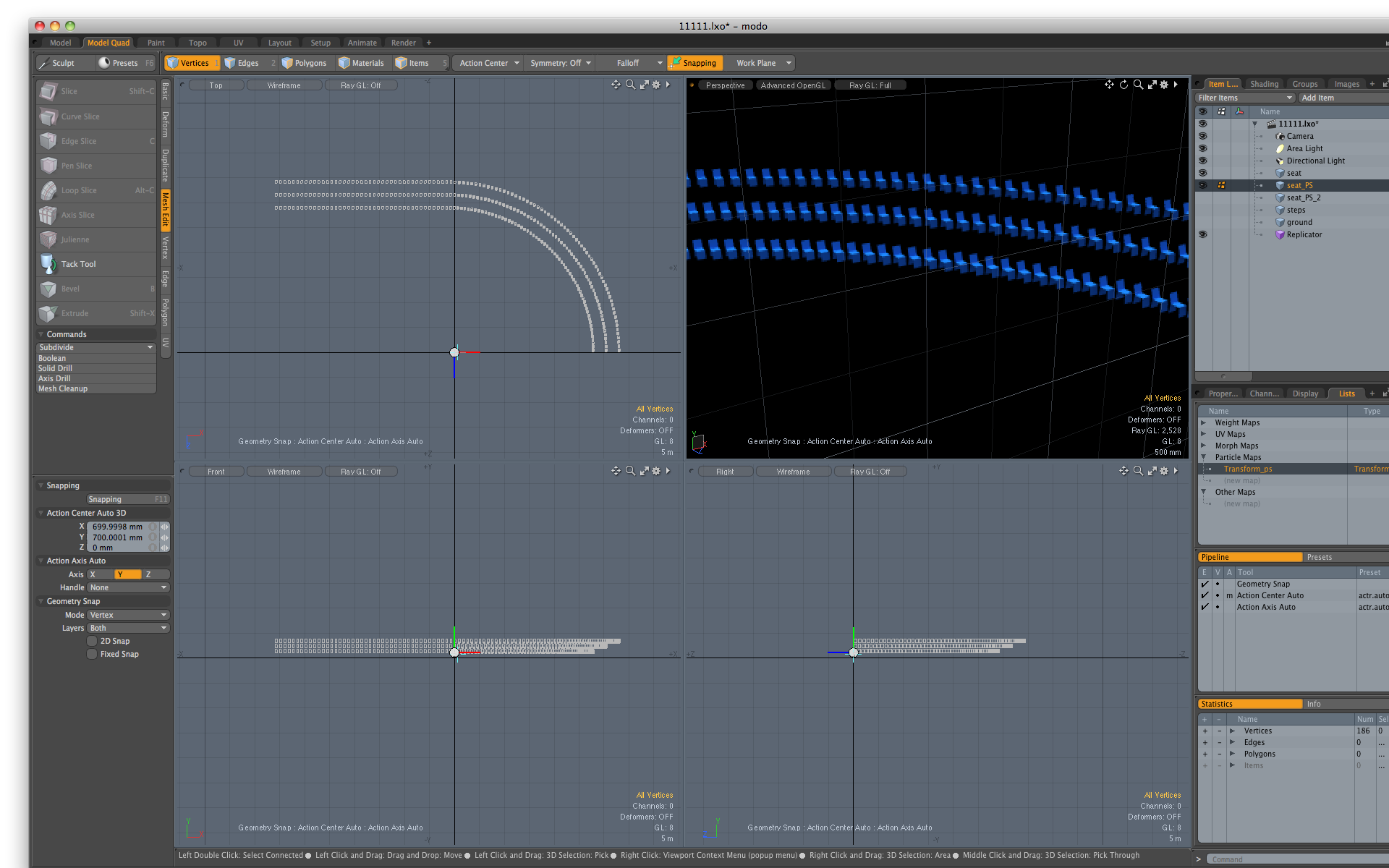 とりあえずここではまず新規メッシュを作成し必要な座席を作る。