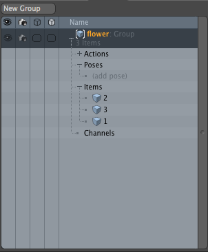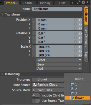 「flower」を選択するとポイントクラウドにも適用される(ボックス表示なのでレンダリングしないとわからないけど)。