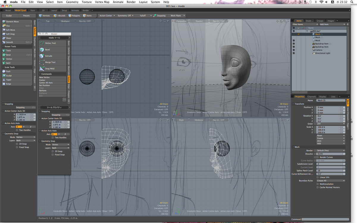 今回はあふれる欲望を抑え、目を作っては整え、鼻を作っては整え、パーツをマージしたらそこを整え常に全体に気を配り、とにかくSDSをかける前のメッシュできれいなメッシュを作らなければきれいにできるわけはないのだとお経のように心の中で繰り返しやった第四号がこれだ!