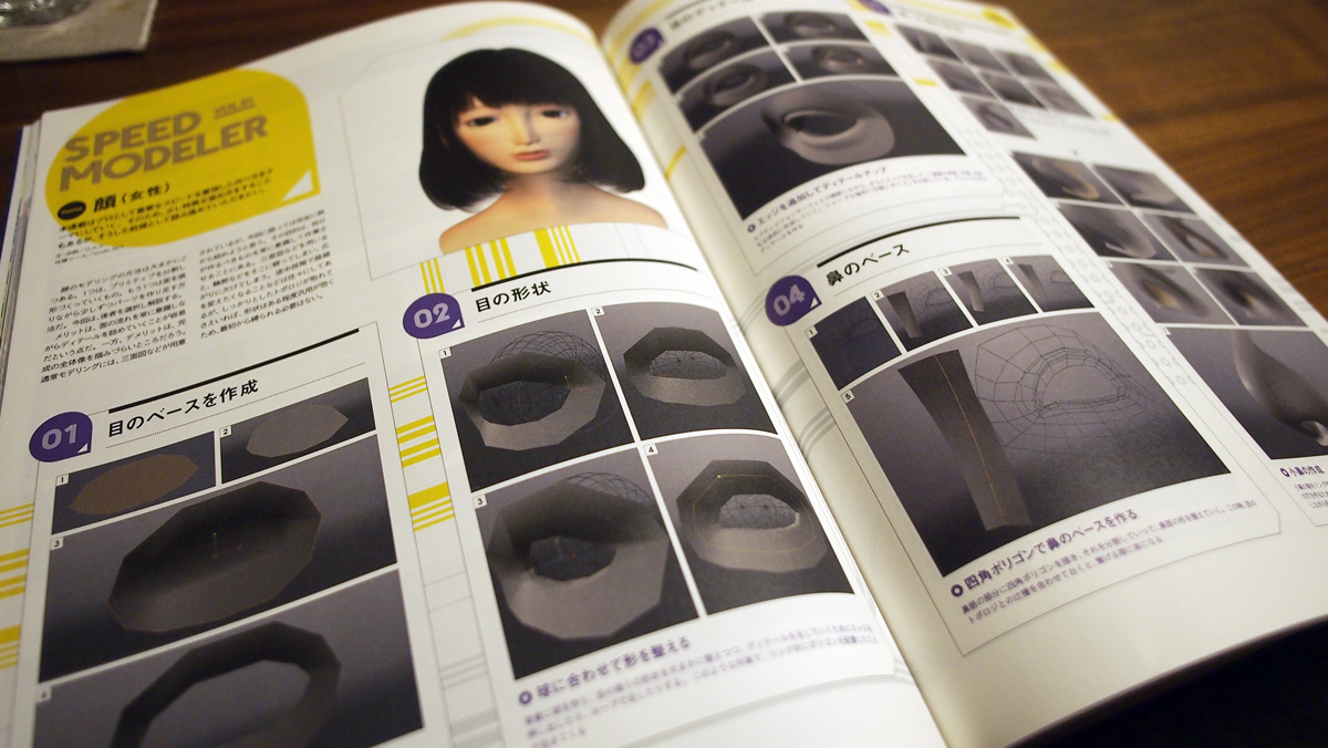 本ではさくさく作れてるのにやってみたら「なんでこここうなる?てか、そもそもどうなってる?」の連続で目と鼻だけで3回やり直したあげく、こりゃだめだということで別のCG WORLDの人体特集のを参考にすることにした。
